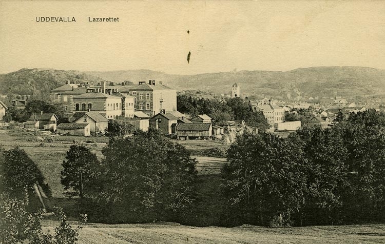 Tryckt text på vykortets framsida: "Uddevalla Lazarettet."