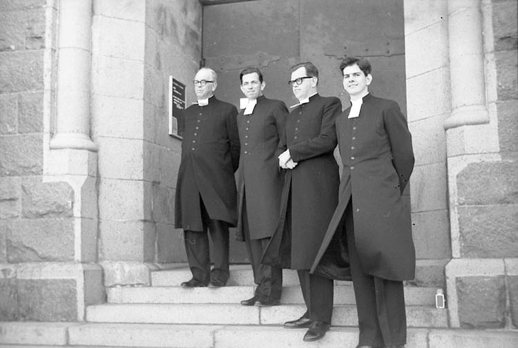 Enligt fotografens notering: "För prästraditionen vidare. (Kontraktsprost Gunnar Franck med sönerna Lennart, Ingemar och Bertil".