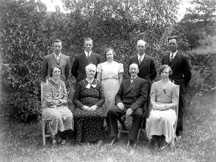 Enligt senare noteringar: "Familj (Thorsell ?) i gröngräset, någonstans i Foss." (BJ)