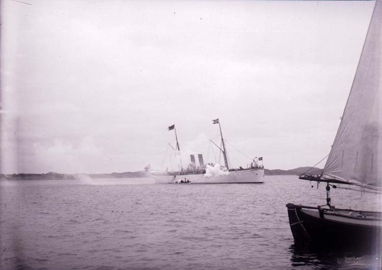 Enligt text som medföljde bilden: "Drott saluterar Lysekil 2/8 02."
