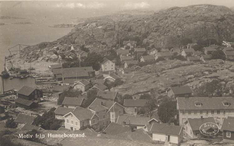 Tryckt text på kortet: "Motiv från Hunnebostrand."