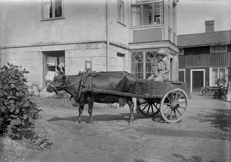 Enligt senare noteringar: "Koskjuts. En ko står förspänd framför en tvåhjulig kärra.
