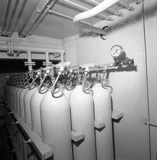 Bilder från utrymmen på fartyg 116-119, troligen från 116 S/S Vorkuta PT 57. CO2-gas för släckning av brand i maskinrum.