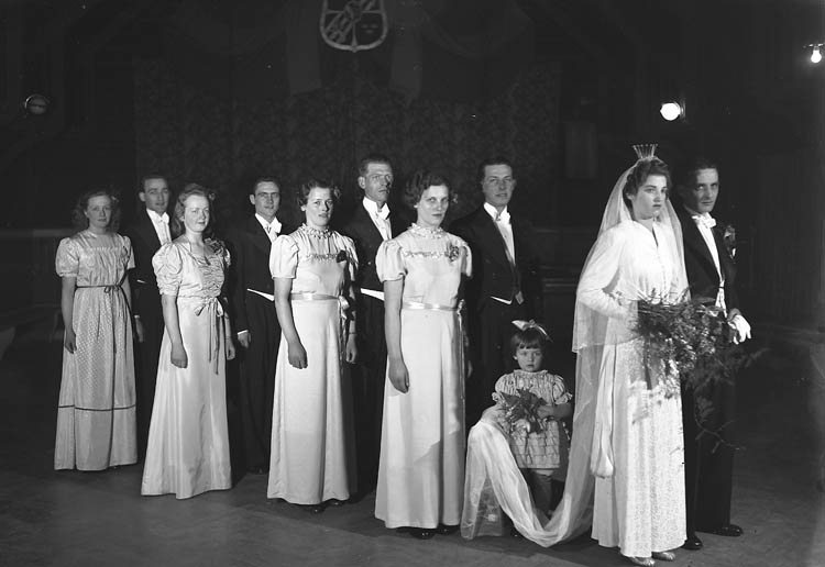 Text till bilden:"Brudparet Bengt Johansson med följe".