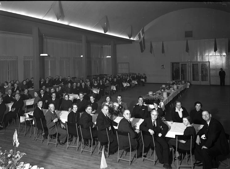 Uppgift enligt fotografen: "Uddevalla. Kongresshallen. komunalarb. fest.."