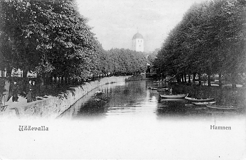 Titel: Tryckt text på vykortets framsida: "Uddevalla Hamnen".