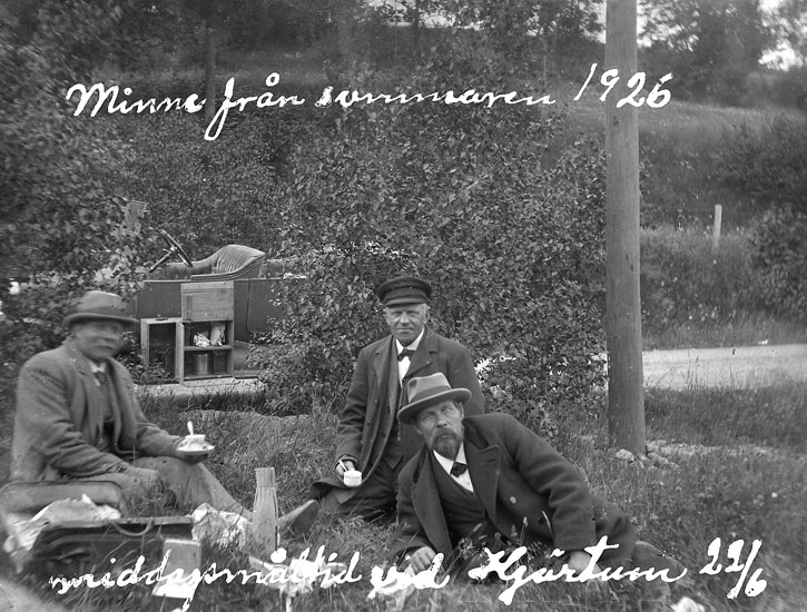 Enligt text skriven på glasplåten: "Minne från sommaren 1926. Middagsmåltid vid Hjärtum 22/6."