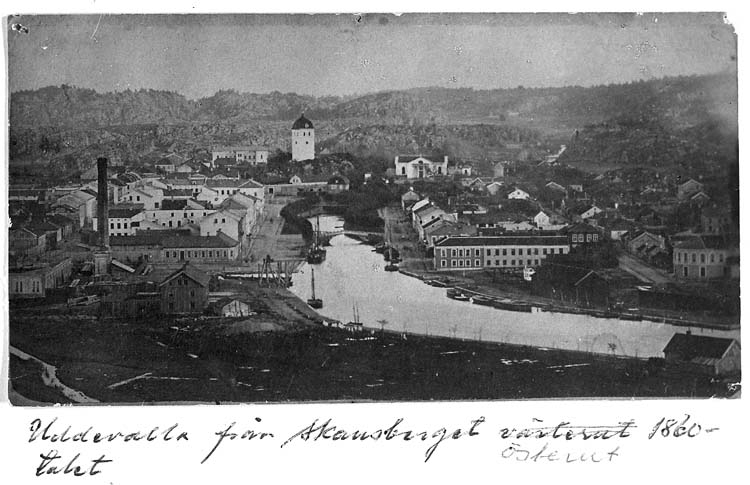 Text på kortet: "Uddevalla från Skansberget österut 1860-talet".