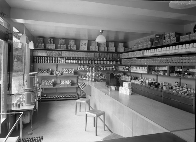 Uppgift enligt fotografen: "Uddevalla. Interiör. Konsumbutik, Fjällvägen."