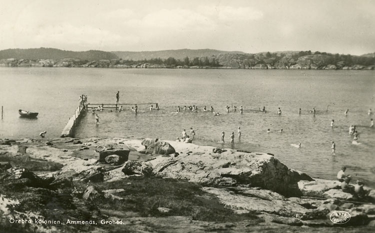 Enligt Bengt Lundins noteringar: "Örebro kolonin Ammenäs, Grohed. Badbryggan".