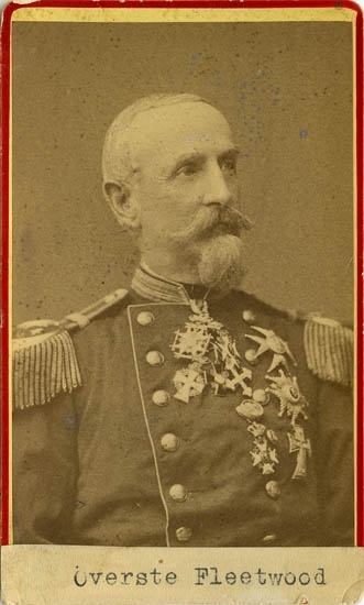 Text på kortets baksida: "Överste Georg Wilhelm Fleetwood, f.1818 d. 1902. Chef för Bohusläns reg. 1868-81".
