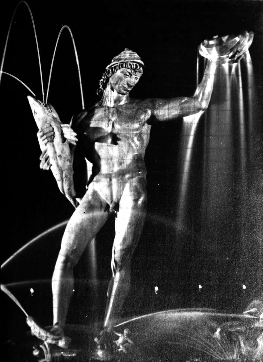"Poseidon med brunnskar", skulptur i brons av Carl Milles på Götaplatsen, Göteborg. Färdigställdes under åren 1927 - 1931.