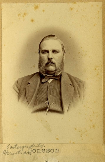 Text på kortets baksida: "Postexpeditör Carl Christian Soneson, Göteborg. F. 1838".