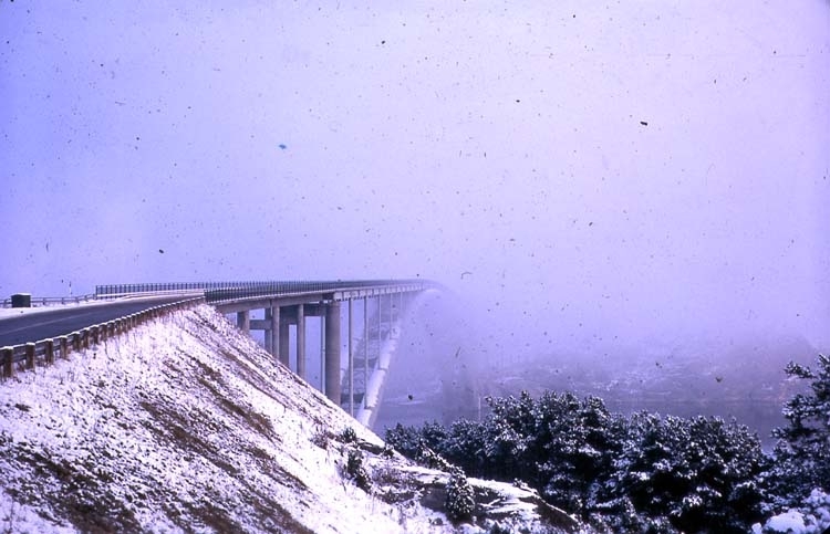 Almöbron i dimma.
