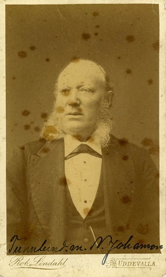 Text på kortets baksida: "Tunnbindaremästaren Niklas Johanson. Född 9/11 1932 död 22/3 1929".