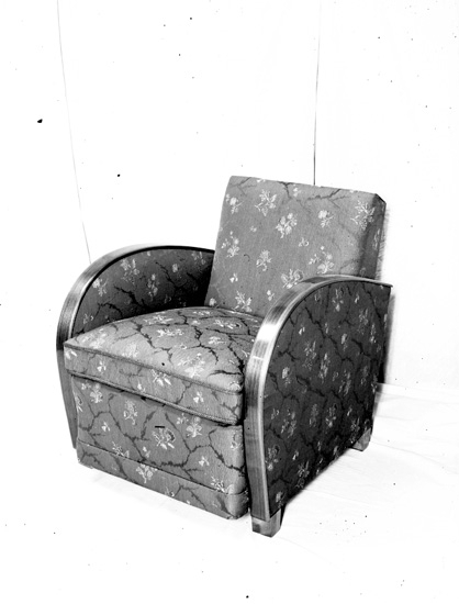 Text till bilden: "Fåtölj med dunplymå utförd av Janne Andersson".