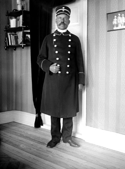 Enligt senare noteringar: " Konduktör Andersson i långrock, taget i hans bostad, 2/7 1915."