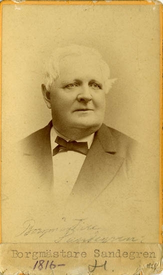 Text på kortets baksida: "Borgmästare Sandegren, f. 1816 d. 1891".