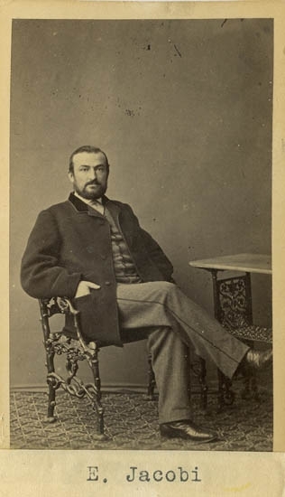 Text på kortets baksida: "Eugen Jacobi. Far till George, Signe o Gerda. Död i Göteborg i tyfus. Gift med Hilma Råberg".