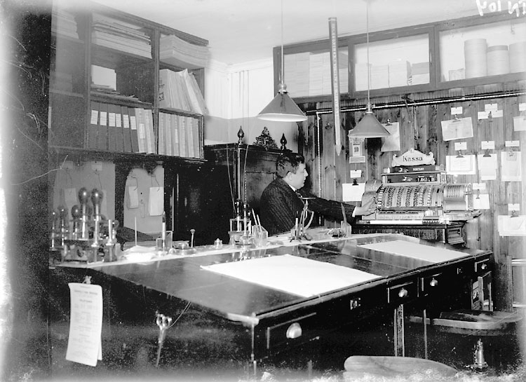 Enligt senare noteringar: "Interiör, kassakontor. Edw. Schlaugs kontor, Eskilstunaboden."