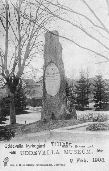 Tryckt text på vykortets framsida: "Uddevalla kyrkogård Wilh. v. Brauns graf".