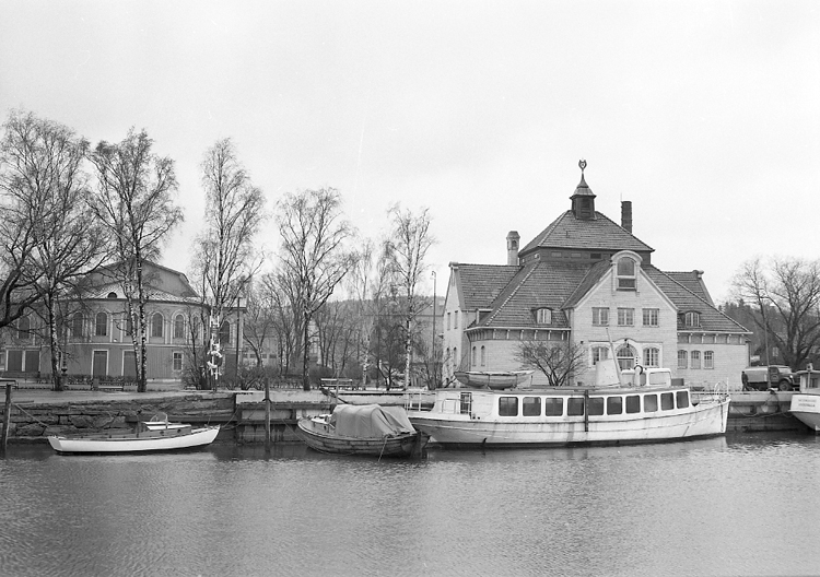 Den stora båten är M/S Gustafsberg som ligger förtöjd vid kajen.