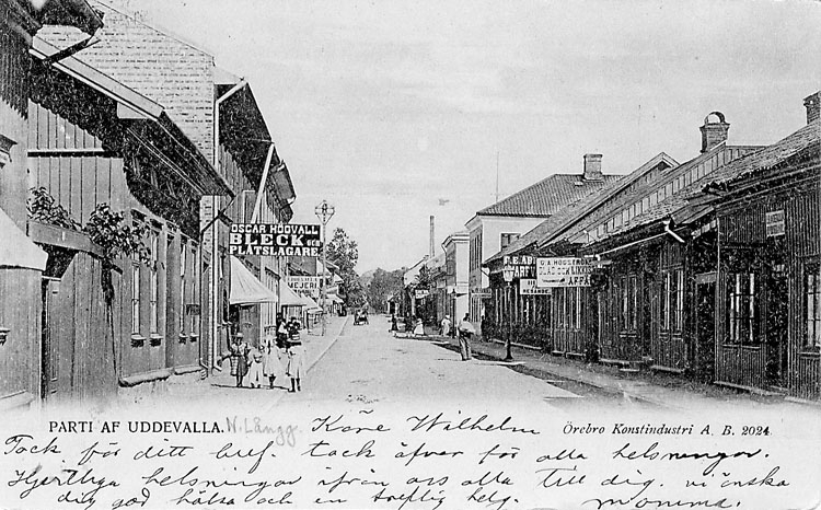 Tryckt text på vykortets framsida: "Parti af Uddevalla".