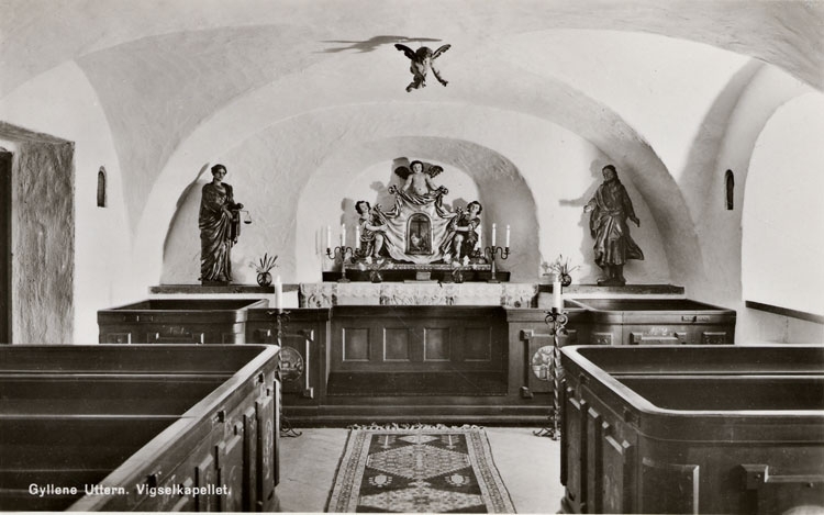 Tryckt text på bilden: "Gyllene Uttern. Vigselkapellet".