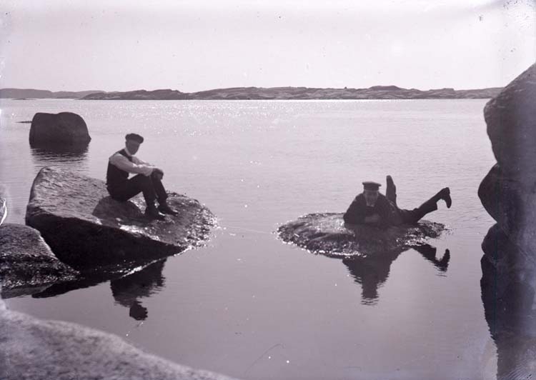 Enligt text som medföljde bilden: "På Humlesäcken." Flatholmen syns i bakgrunden.