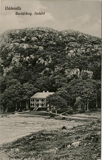 Tryckt text på vykortets framsida: "Gustafsberg, Bodelid."