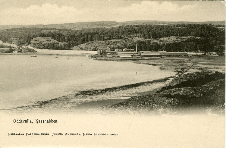 Tryckt text på vykortets framsida: "Uddevalla Kasenabben."