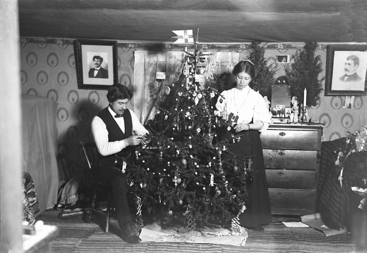 Enligt senare noteringar: "Julgransklädning, någonstans i Foss." (BJ)