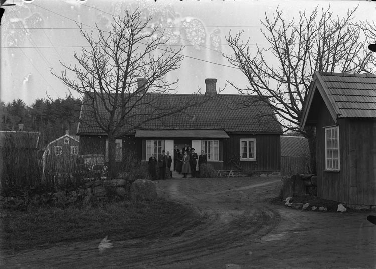 Enligt fotografens anteckningar: "1932, 111. Faleby, den gamla byggnaden numer riven, numera en ny. Lantbrukare Fritz Östlund Faleby, hustrun Ida Blomdal Torsby Bohuslän".