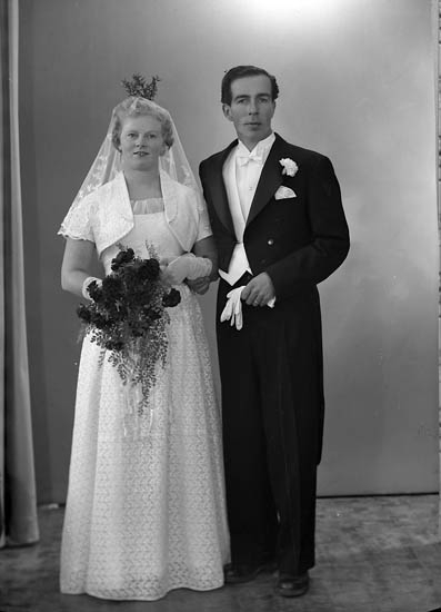 Enligt fotografens journal nr 8 1951-1957: "Sträng, Brudparet Karl Erik, Stenungsund".