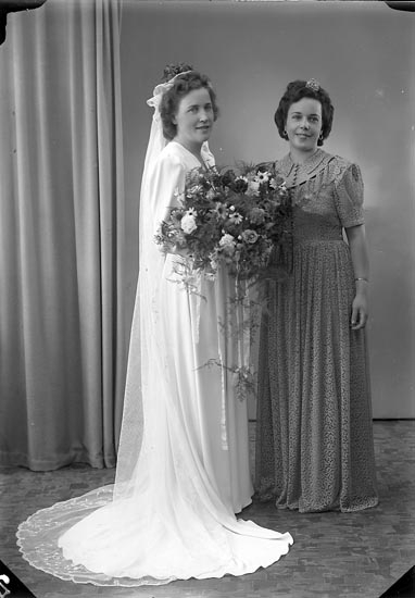 Enligt fotografens journal nr 7 1944-1950: "Johansson - Engelbreckt Solgården Här, bruden med syster".