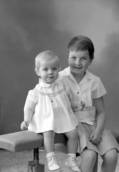Enligt fotografens journal nr 9 1958: "Skog, Anne-Katrin o Agneta Box 388 Här".