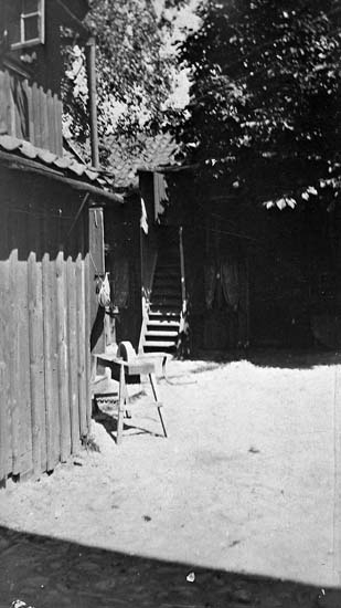 Slipsten i träställning på bagare Anderssons gård, hörnet Kilbäcksgatan - Torggatan, Uddevalla