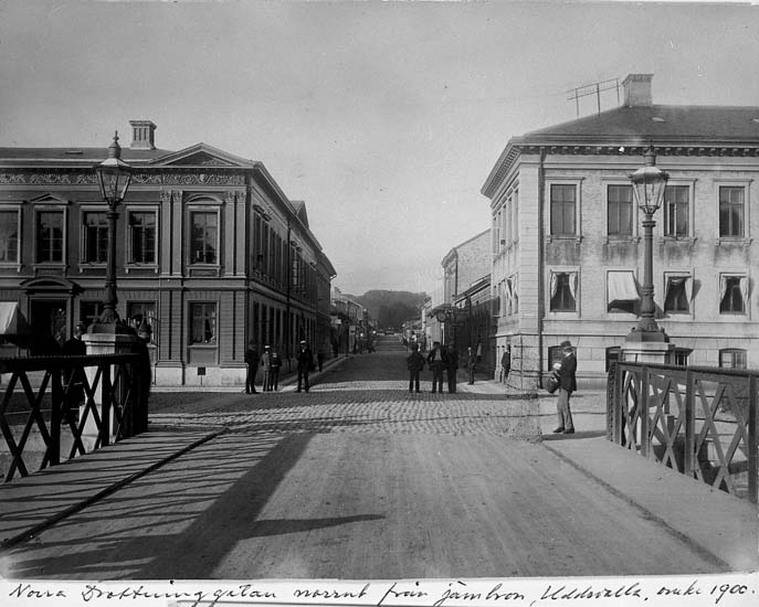 Text på kortet: "Norra Drottninggatan norrut från järnbron, Uddevalla, omkr.1900".