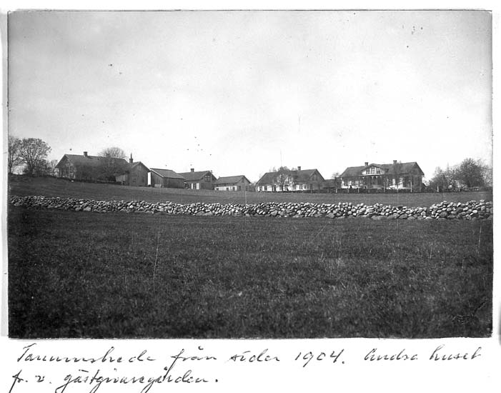 Text på kortet: "Tanumshede från söder 1904. Andra huset fr.v. gästgivaregården".