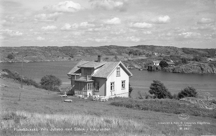 Enligt text på fotot: "Fiskebäckskil. Villa Jullebo med Sälvik i bakgrunden".