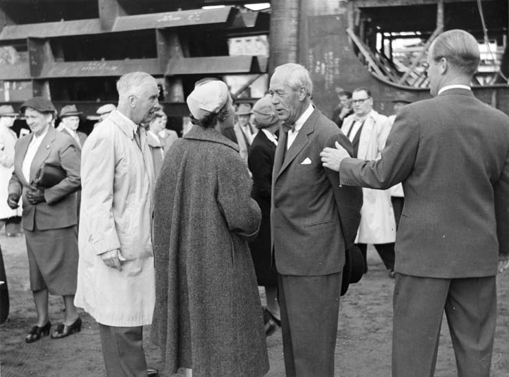 Publik inför dop och sjösättning av 114 M/S Hjördis Thordén.
