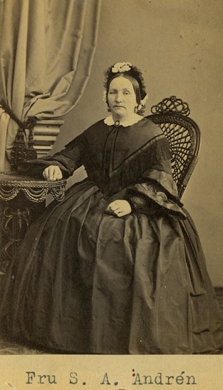 Text på kortets baksida: "Fru Sofia Anna Andrén. Gift med bagarmästaren Carl A Andrén