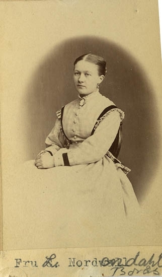 Text på kortets baksida: "Fru Charlotte Nordendahl, f. Hellgren".