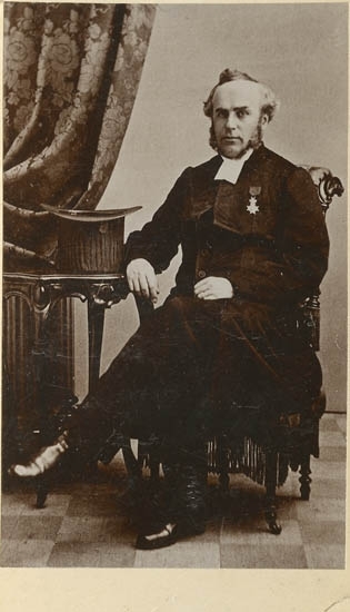 Text på kortets baksida: "Ärkebiskop Anton Niklas Lundberg, f. 1818 d. 1900. Uddevallason".
