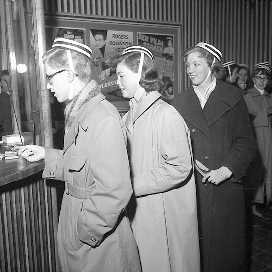 Enligt notering: "Realister står i kö på Grands biografkassan 3-5-56".