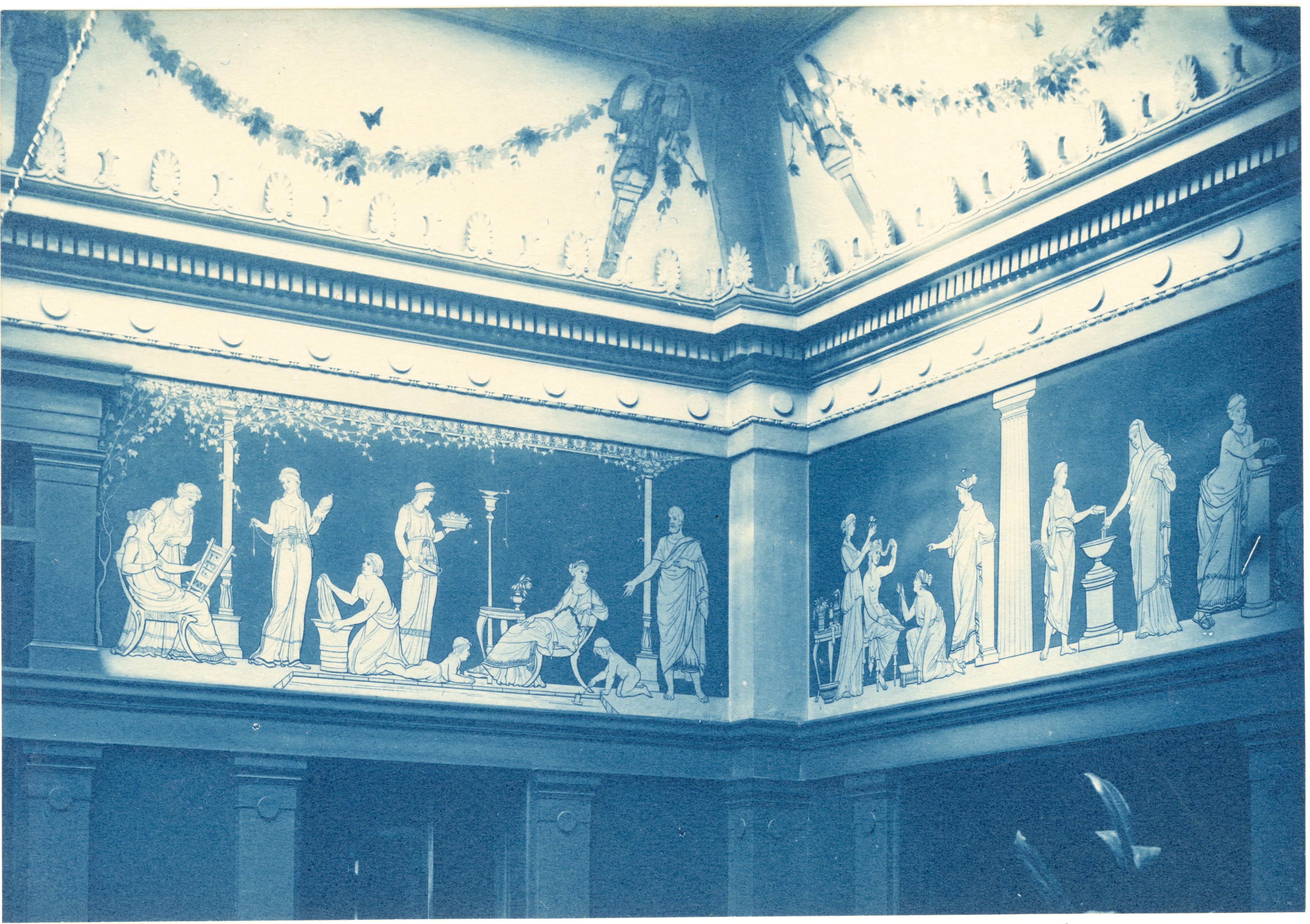 Interiör med väggfris från Curmans villa. Byggnaden inspirerades av arkitekt Karl Friedrich Schinkel och uppfördes 1880-81. Det är i romerskt lantstil.