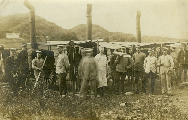 Enligt Bengt Lundins noteringar: "Från "kriget" i Bohuslän 1907. Anfallande styrkas fältkök".