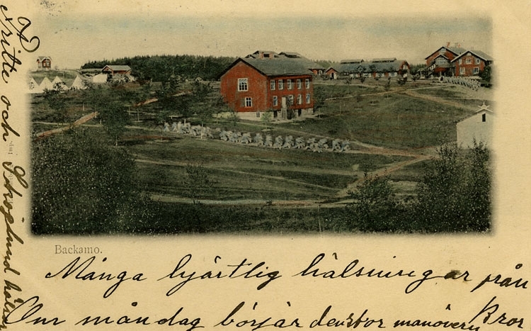 Enligt Bengt Lundins noteringar: "Backamo. Utsikt från u-officersmässen åt väster".