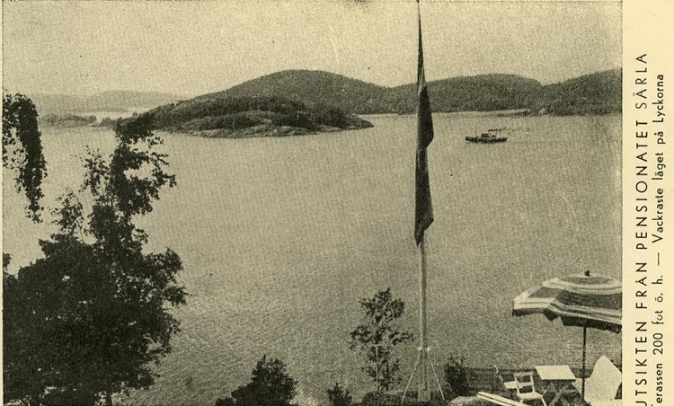 Enligt Bengt Lundins noteringar: "Utsikt från Särla Pensionat. Lyckorna. Terassen".