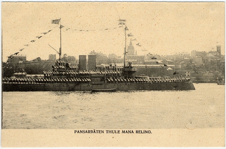 Brevkort. "PANSARBÅTEN THULE MANA RELING"